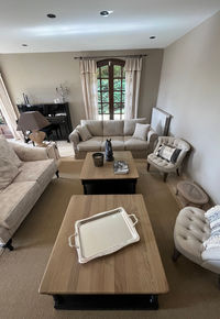 J'ai également choisi une nouvelle teinte pour tous les murs de la maison. L’intégralité du mobilier pour le séjour (tapis, tables, assises, canapés, rideaux...) a été renouvelé.