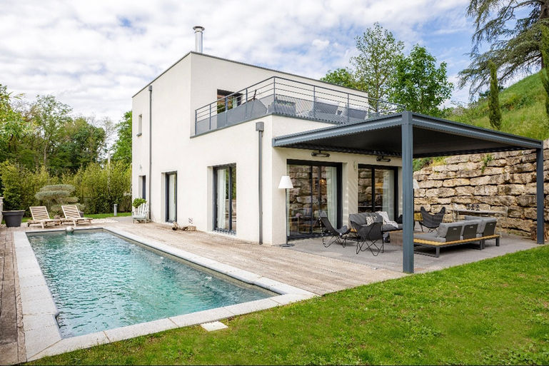 Les clients ont acheté cette maison déjà construite dans l’ouest lyonnais mais il fallait la remettre au goût du jour et aménager les extérieurs.